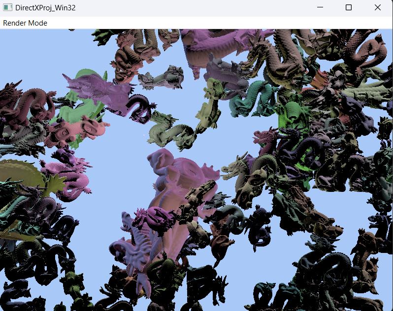For my scene I chose to render multiple instances of the Stanford Dragon mesh using GPU instancing to eliminate the CPU bottleneck.